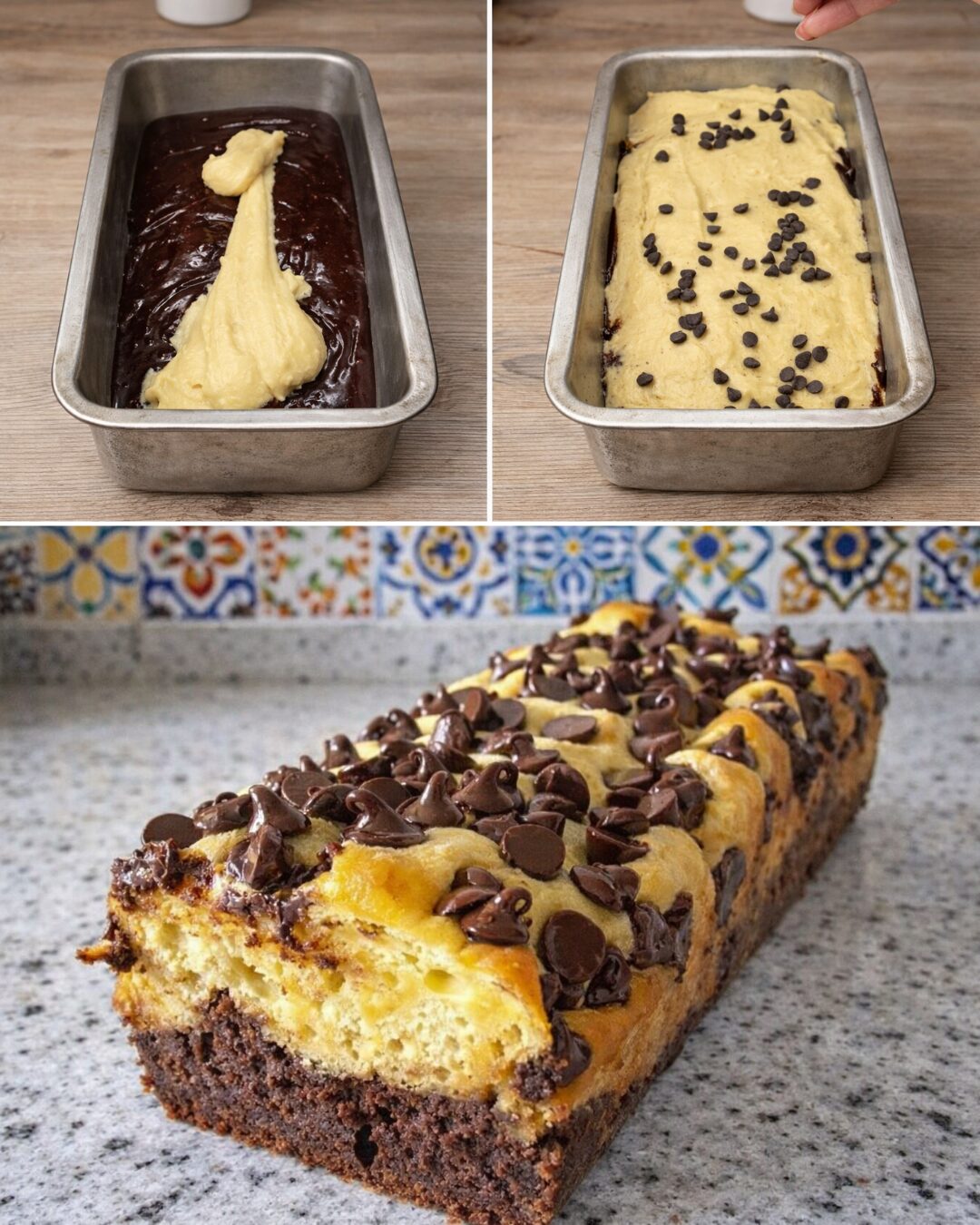 Versez successivement la pâte chocolatée puis la pâte nature.