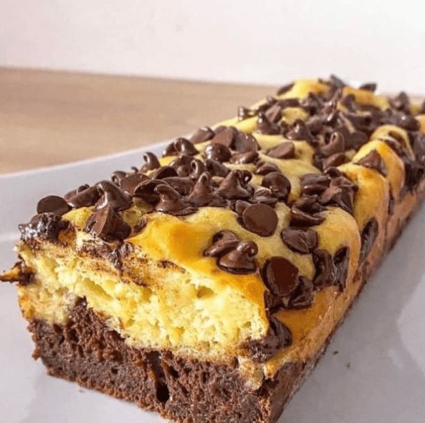Dans le moule, versez une couche de pâte au chocolat, puis la pâte nature par-dessus.